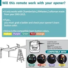 About this item Universal Compatibility - 893LM liftmaster remote is compatible with LiftMaster/Chamberlain/Craftsman garage door openers manufactured from 1993 to current, including Security + 2.0(Yellow Learn Button), 315 MHz Security + (Purple Learn Button), 390 MHz Security + (Red or Orange learn button, 390 MHz Billion Code (Green Learn Button). Upgraded design: Liftmaster 893LM remote garage door opener have further remote control coverage, stronger signal transmission, working distance up to 100 feet. Convenient and versatile, it is your must-have garage remote control alternative. Easy to Program: 893LM remote liftmaster can replace 81LM, 371LM, 971LM, 891LM, 890MAX Remote Control Transmitter. A detailed user manual is included to help you get set up in minutes. TIPS: Make sure your garage door opener is fully closed before starting remote programming. High-quality after-sales service: Our products provide a one-year warranty service, no matter for any reason you are not satisfied, please write to us, we will provide you with timely service. Note: Accessories are compatible spares (non-original), the above brand names and any related model names are only used to demonstrate compatibility. Universal 893LM liftmaster remote. Battery Includes. Keychain Includes. Package Includes : 2x 893MAX 139.53753 956CD 950CD for Chamberlain Liftmaster Garage Door Remote Control 1x Instructions On Aug 13, 2024 at 11:56:12 PDT, seller added the following information: