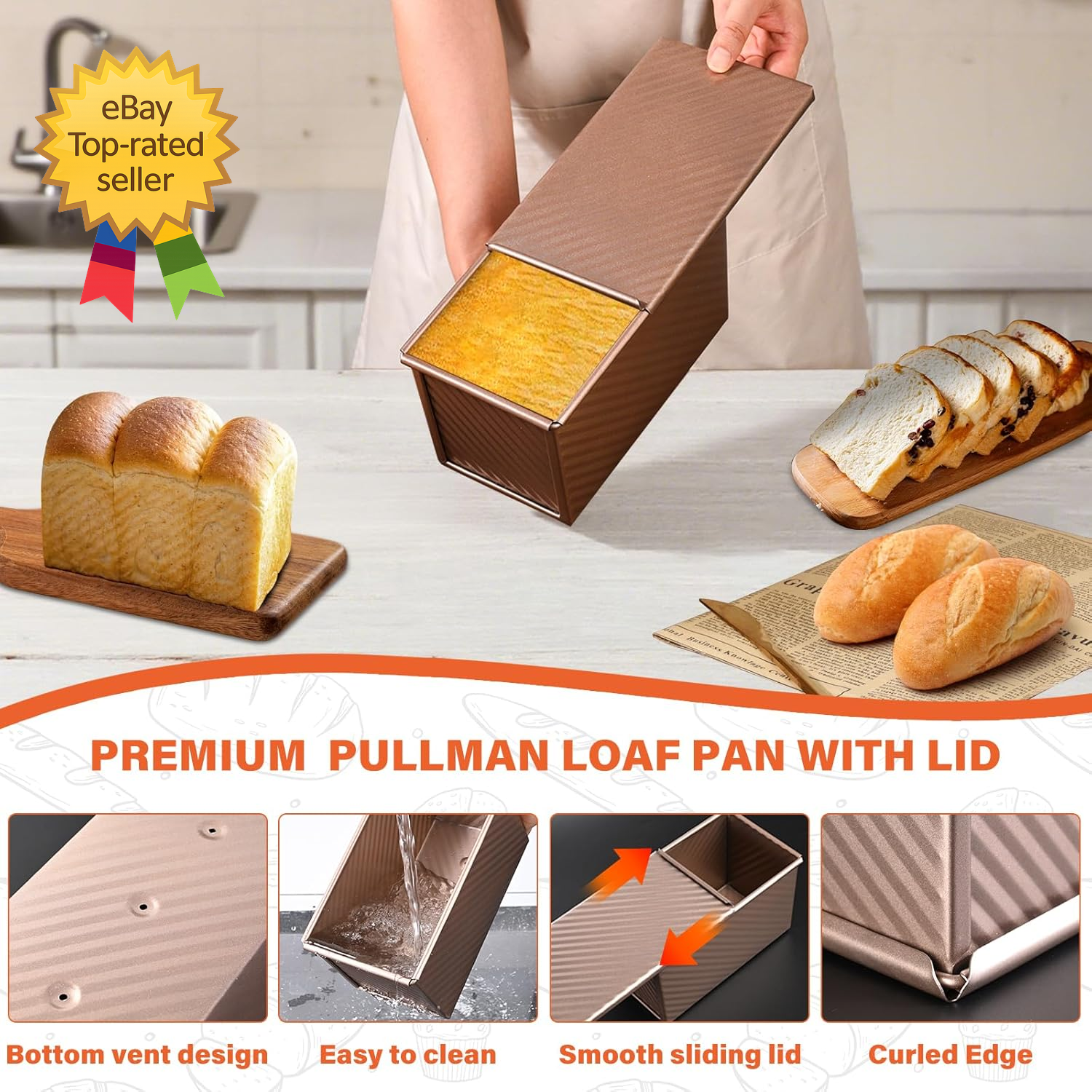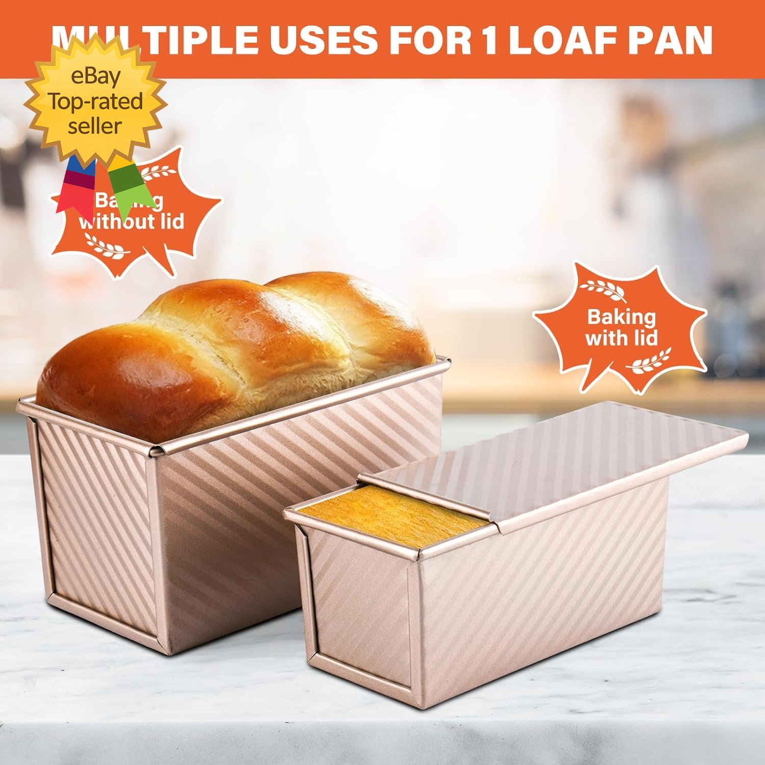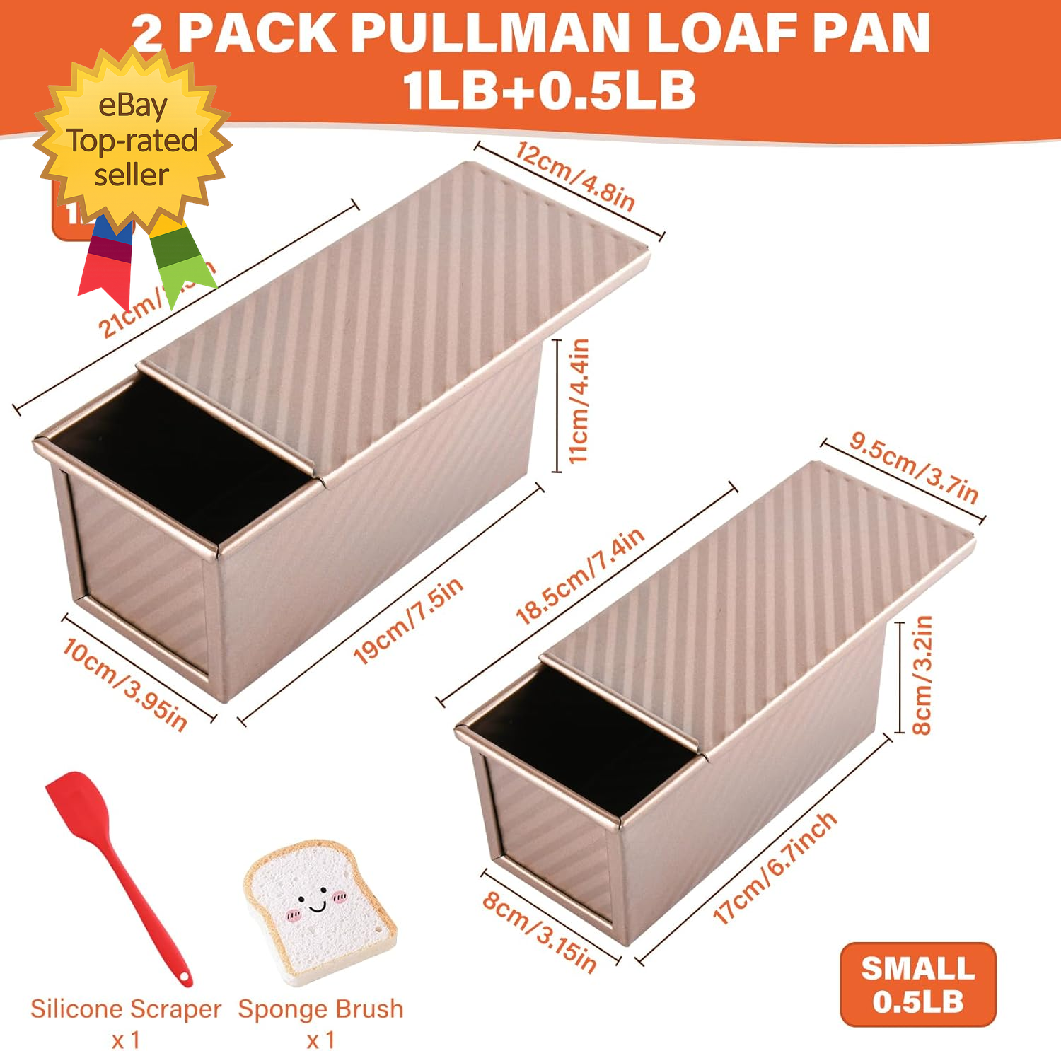 Store New Arrivals Add to Favorite View Feedback Contact 2 Pack Pullman Loaf Pan with Lid 1 Lb/0.5 Lb Dough Capacity for Homemade Bread Description Special Feature Oven Safe Specific Uses For Product Bread Product Care Instructions Dishwasher Safe Size 1lb+0.5lb 【What You Will Get】Package includes 1 x large loaf pan, 1 x small loaf pan, 1 x silicone scraper & 1 x wood pulp cotton brush. 8.3 x 4.8 x 4.4 inch large bread pan, with 1lb dough capacity, is ideal for 4-6 person families. 7.4 x 3.7 x 3.2 inch, 0.5lb dough capacity, small sandwich baking pan is perfect for 1-2 person household. The silicone scraper can stir the dough. It is more flexible to use them on different occasions to meet different needs. (NOTE: PLS confirm your ideal size in product images before ordering!) 【Multiple Use Pullman Loaf Pan】The Pullman loaf pan with lid is versatile for bakeware and can be used to bake quick bread, bread toast, French bread, bread rolls, pastry rolls, classic meatloaf, sandwich bread, and hamburger buns. Flexible use of the lid can make regular square bread or soft French loaves. It is an essential tool for any baking enthusiast! 【Quality & Durable Assurance】Made of 40% thickened carbon steel for greater rust and heat resistance (capable of withstanding temperatures up to 220°C/428°F). 【Unique design】1. With a food-grade non-stick coating, you can easily pop out bread from the toast pan. 2. The bottom vent design enables even heating of the dough, preserves the taste and quality of food. 3. The lid can be smoothly opened and closed by the sliding lid design in the oven. 4. You can directly grip and lift the baking pan with the round rolled edge design. 【Usage Tips】1. Before the first use, apply a coat of butter and bake for 5 minutes to enhance its non-stick performance. 2. Avoid using sharp objects or mental scraper that may destroy the non-stick coating. 3. Please do not always bake at a higher temperature than 220°C/428°F. It may damage the non-stick coating. 4. Dry the product after using and store in dry environment. ABOUT US We offer the best prices around on high quality products. Our E-store includes media such as books, movies, music and games while offering electronics, toys, sporting apparel, clothing, tools, general home, garden items and more. SHIPPING We are always working hard to ensure your package arrives as soon as possible. Please understand that some factors like weather, high postal traffic, and the performance of shipping companies are outside of our control. We offer free shipping to the lower 48 states and ship within 2 business days of payment, usually sooner. We do not accept P.O. Boxes. Please provide a physical address. For shipping outside of the continental USA, we only use eBay's Global Shipping Program.The item is shipped to KY and then sent to the rest of the world. International customers are responsible for all duties and taxes. Continue to check out in order to calculate costs for shipping the item to your country. Messages regarding eBay's Global Shipping Program MUST be directed at eBay EXCLUSIVELY. RETURNS We offer a 30-Day Return Policy on items which you are not completely satisfied with. You have the option for a full-refund or an exchange of the item. No returns are available on items shipped outside of the USA. PAYMENT We accept PayPal. CONTACT US This page content is yet to come Please ad us to your favorite seller and visit again later Thank You CUSTOMER SATISFACTION We try our very best to make sure every customer is completely satisfied. If there's a problem, message us! We're happy to help.