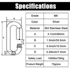 Store New Arrivals Add to Favorite View Feedback Contact 2 Pack Quick Link M8 5/16 Inch Heavy Duty Carabiner D Shape Chain Links 1500LB Capacity Repair Utility Links Safety Chain Connector for Camping Outdoor Equipment Locking Hammocks Harness Leash Description Style Oval, 3 Inch, 2 Pack Color Silver Product Dimensions 3.1 x 1.3 x 0.04 inches; 0.63 ounces Material Stainless Steel Shape Oval Lock Type Wire Lock, Screw Lock Department unisex-adult DURABLE MATERIAL- Made of heavy duty stainless steel, these carabiners are extremely durable and sturdy. Compact design quick link resists corrosion in harsh weather for long periods of use. THREADED LATCH SAFE DESIGN- Wire gate type locking helps reduce gate lash and is designed to create permanent or temporary secure connections. Very easy to use, screw clockwise to unlock and screw anti-clockwise to lock. WIDE APPLICATION OUTDOOR CARABINER- These quick link connectors are ideal for hammock, camping, fishing, hiking, backpack, paddle, traveling, swing, punching bag, dog leash and more.NOT FOR CLIMBING. Its working capacity can range up to 1500lb. Please don't exceed the max load for your own safety. ALL PURPOSE INDOOR USE- You can also use it for backpack, keyring, chains, power tools as well as automotive tools and supplies, garage tools, locking dog leash and harness as these carabiners can hold up strongly and last a long time. Product Description Anvin 12 Pack Quick Link Heavy Duty Carabiner Repair Chain Links These heavy duty quick links are ideal for daily life use. They can be attached to the backpack, porch swing, handbag, pets. They also can be used for outdoor activities like camping, fishing, hiking, traveling, etc. Quick links are the quickest way to link or repair chains. Features: Superior corrosion resistance for harsh water Ultra sturdy stainless steel material Premium-grade quick links for chain connections Threaded-nut closure for added security Ideal for outdoor applications Good for backpack keyring chains power tools Specifications: Grade: M8 Color: Silver Material: 304 Stainless Steel Size: 3.1*1.3inch/80*33.5mm Opening width: 0.4inch/10.5mm Diameter: 0.29inch/7.5mm Maximum Load: 1500lbs/700kg safe work load Product weight: 55g/pcs Package included: 2 pack M8 Quick Link Specifications: Grade: M4 Color: Silver Material: 304 Stainless Steel Size: 1.57*0.75inch/40*19mm Opening width: 0.21inch/5.5mm Diameter: 0.16inch/4mm Maximum Load: 400lbs/180kg safe work load Product weight: 13g/pcs Package included:12 pack M4 Quick Link ABOUT US We offer the best prices around on high quality products. Our E-store includes media such as books, movies, music and games while offering electronics, toys, sporting apparel, clothing, tools, general home, garden items and more. SHIPPING We are always working hard to ensure your package arrives as soon as possible. Please understand that some factors like weather, high postal traffic, and the performance of shipping companies are outside of our control. We offer free shipping to the lower 48 states and ship within 2 business days of payment, usually sooner. We do not accept P.O. Boxes. Please provide a physical address. For shipping outside of the continental USA, we only use eBay's Global Shipping Program.The item is shipped to KY and then sent to the rest of the world. International customers are responsible for all duties and taxes. Continue to check out in order to calculate costs for shipping the item to your country. Messages regarding eBay's Global Shipping Program MUST be directed at eBay EXCLUSIVELY. RETURNS We offer a 30-Day Return Policy on items which you are not completely satisfied with. You have the option for a full-refund or an exchange of the item. No returns are available on items shipped outside of the USA. PAYMENT We accept PayPal. CONTACT US This page content is yet to come Please ad us to your favorite seller and visit again later Thank You CUSTOMER SATISFACTION We try our very best to make sure every customer is completely satisfied. If there's a problem, message us! We're happy to help. WE ACCEPT Copyright © 2021 AutoDS. | All Rights Reserved
