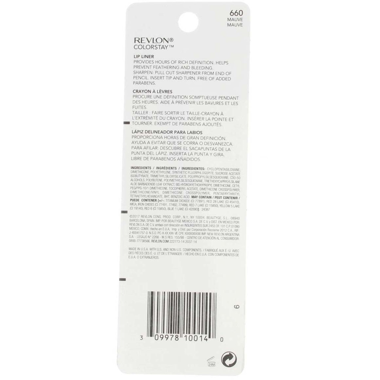 Product Description Defines lips and extends lipcolor wear. Pull-out sharpener. Rich definition. What It Does: Defines lips with smooth color. Blends easily and can be used to extend lipcolor wear. Prevents feathering and bleeding. How it works: Exclusive ColorStay formula with SoftFlex technology provides longwearing definition and makes lipcolor last longer. Provides longwearing definition Helps lip color last longer Prevents feathering and bleeding of lip color Hours of rich definition Available in 14 shades with built-in sharpener Ingredients Ozokerite, Cyclopentasiloxane, Trimethylsiloxysilicate, Phenyl Trimethicone, Polyethylene, Tocopherol, Aloe Barbadensis Leaf Extract, Glycine Soja (Soybean) Oil, Disteardimonium Hectorite, Dicalcium Phosphate, Caprylyl Methicone, Propylene Carbonate, Sorbic Acid, Propylparaben, Methylparaben. May Contain: Iron Oxides (CI 77491, 77492, 77499), Titanium Dioxide (CI 77891), Red 7 Lake (CI 15850), Mica (CI 77019), Blue 1 Lake (CI 42090), Carmine (CI 75470), Yellow 6 Lake (CI 15985), Manganese Violet (CI 77742), Red 21 Lake (CI 45380), Red 6 (CI 15850), Yellow 5 Lake (CI 19140), Bismuth Oxychloride (CI 77163), Orange 5 Lake (CI 45370), Red 21 (CI 45380), Red 27 Lake (CI 45410), Red 30 (CI 73360), Red 6 Lake (CI 15850), Yellow 10 Lake (CI 47005), Zinc Oxide (CI 77947), Red 36 (CI 12085), Red 28 Lake (CI 45410), Red 22 Lake (CI 45380). Instructions Get The Look: To Define: Outline lips following their natural contour. To Extend Wear: Fill in lips entirely before applying lipcolor. Sharpens Easily: Pull out sharpener from end of pencil. Twist pencil to expose fresh color. Insert in sharpener and turn gently. Product Description Defines lips and extends lipcolor wear. Pull-out sharpener. Rich definition. What It Does: Defines lips with smooth color. Blends easily and can be used to extend lipcolor wear. Prevents feathering and bleeding. How it works: Exclusive ColorStay formula with SoftFlex technology provides longwearing definition and makes lipcolor last longer. Provides longwearing definition Helps lip color last longer Prevents feathering and bleeding of lip color Hours of rich definition Available in 14 shades with built-in sharpener Ingredients Ozokerite, Cyclopentasiloxane, Trimethylsiloxysilicate, Phenyl Trimethicone, Polyethylene, Tocopherol, Aloe Barbadensis Leaf Extract, Glycine Soja (Soybean) Oil, Disteardimonium Hectorite, Dicalcium Phosphate, Caprylyl Methicone, Propylene Carbonate, Sorbic Acid, Propylparaben, Methylparaben. May Contain: Iron Oxides (CI 77491, 77492, 77499), Titanium Dioxide (CI 77891), Red 7 Lake (CI 15850), Mica (CI 77019), Blue 1 Lake (CI 42090), Carmine (CI 75470), Yellow 6 Lake (CI 15985), Manganese Violet (CI 77742), Red 21 Lake (CI 45380), Red 6 (CI 15850), Yellow 5 Lake (CI 19140), Bismuth Oxychloride (CI 77163), Orange 5 Lake (CI 45370), Red 21 (CI 45380), Red 27 Lake (CI 45410), Red 30 (CI 73360), Red 6 Lake (CI 15850), Yellow 10 Lake (CI 47005), Zinc Oxide (CI 77947), Red 36 (CI 12085), Red 28 Lake (CI 45410), Red 22 Lake (CI 45380). Instructions Get The Look: To Define: Outline lips following their natural contour. To Extend Wear: Fill in lips entirely before applying lipcolor. Sharpens Easily: Pull out sharpener from end of pencil. Twist pencil to expose fresh color. Insert in sharpener and turn gently. Disclaimer The product descriptions and instructions provided by vitabox.com are for informational purposes only and are qualified in their entirety by the information available from manufacturers of the products. You should carefully read all product packaging, and contact the manufacturer with any questions before using a product. While we endeavor to ensure that product descriptions are current, manufacturers sometimes change their products. We are not liable for inaccuracies or misstatements about products. We do not provide medical advice or recommendations. You should not use the information provided by vitabox.com for diagnosing or treating a health problem or disease. If you have or suspect that you have a medical problem, immediately contact your health care provider. Information and statements regarding dietary supplements have not been evaluated by the Food and Drug Administration or any other government agency and are not intended to diagnose, treat, cure, or prevent any disease.