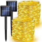 Product Details: 1. Color: White (8 Light Modes Can Be Adjusted) 2. LED Quantity: 100 PCS 3. Length: 33 Ft + 6Ft (Down-Lead) 4. LED Specification : High Bright LED Features: 1. 100 Brilliant LED Lights - 100 Super Bright LED Bulbs On 33ft High Quality Copper Wire. Made With Thin and Flexible Copper Wire, Coiled with Bobbin Winder to Avoid a Mess. 2. Easy To Shape - Flexible Copper Wiring Can Easily Build the Shapes You Want, Wrap Around Tree Trunks or Gazebos, In the Dark, The Wire Fades to Invisible, Leaving Only the Bright Lights. Ideal For Decorating Your Gardens, Patio, Gate, Yard, Wedding, Party Etc. 3. 8 Light Modes Can Be Adjusted. Mode (Steady On / Flashing). With Steady 360 Degree Viewing Angle They Illuminate in Every Direction. 4. The Solar Powered String Lights (Low Voltage, No Transformer Included) Is Easy to Storage and Ready for The Next Use. Also, It Is Environmental- Friendly, High Energy Conversion Rate, Durable and Safe to Use. 5. Switch Buttons - POWER ON/OFF. Auto On at Dusk, Auto Off by Day. 6. Water Resistant - Both the String Lights and The Solar Panel Are IP65 Waterproof. No Worry to Use Them In The Rain. Package includes: 2 x Solar Power Lights 2 x Stake Connector 2 x Pointed Stake On Dec 23, 2025 at 04:26:00 PST, seller added the following information: