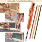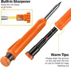 About this item Deep Hole Marker for Wide Application: the deep hole carpenter pencil marker can draw on various materials surface like metal, wood, paper and cement, which is suitable for architect, woodworkers, designers for daily work; Ideal gift for Father's Day Pencil Cap with Non Slot Clip: the carpenter pencil cap has a non slot design for firmly attaching to pocket, carpenter bag, book and tool belt, which is portable for carpenter's daily work Pencil Cap to Protect Carpenter Pencil: the solid carpenter pencil cap is a better tool to protect pencil metal part from dust, liquid and rust, making your construction work easier Built in Sharpener: carpenter pencil top is equipped with mini pencil sharpener; Rotate marking pencil top to take out pencil sharpener, you can sharpen pencil refills anytime Package Includes: the solid carpenter pencil set contains 2 mechanical construction pencil (built-in sharpener), 2 carpenter pencil caps and 3 box refills(3 red refills, 6 yellow refills, 9 gray refills), which can meet your woodworking marking needs for daily life