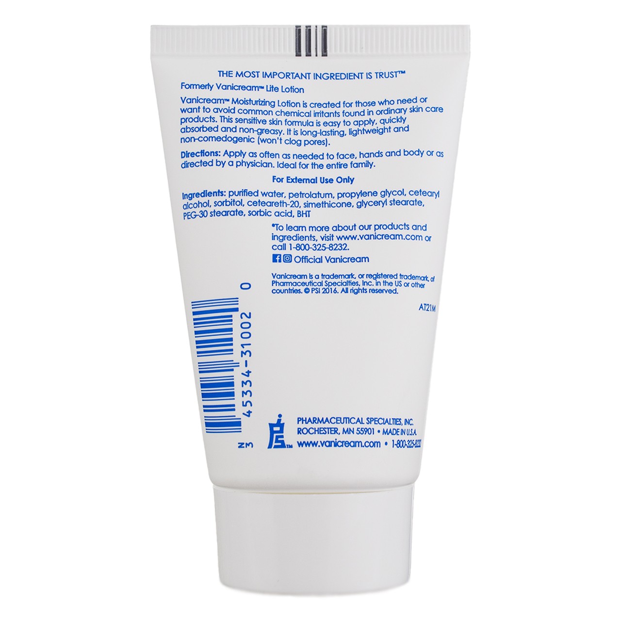 Product Description Vanicream lite skin care lotion is a face, hands and body lotion specially formulated to moisturize dry skin. Carefully chosen ingredients effectively moisturize the skin without exposing the user to common chemical irritants. Goes on non-greasy. Dye free, perfume/fragrance free, lanolin free, paraben free, formaldehyde free. Ingredients Purified water, petrolatum, propylene glycol, cetearyl alcohol, sorbitol, ceteareth-20, simethicone, glyceryl stearate, PEG-30 stearate, sorbic acid, BHT. Product Description Vanicream lite skin care lotion is a face, hands and body lotion specially formulated to moisturize dry skin. Carefully chosen ingredients effectively moisturize the skin without exposing the user to common chemical irritants. Goes on non-greasy. Dye free, perfume/fragrance free, lanolin free, paraben free, formaldehyde free. Ingredients Purified water, petrolatum, propylene glycol, cetearyl alcohol, sorbitol, ceteareth-20, simethicone, glyceryl stearate, PEG-30 stearate, sorbic acid, BHT. Disclaimer The product descriptions and instructions provided by vitabox.com are for informational purposes only and are qualified in their entirety by the information available from manufacturers of the products. You should carefully read all product packaging, and contact the manufacturer with any questions before using a product. While we endeavor to ensure that product descriptions are current, manufacturers sometimes change their products. We are not liable for inaccuracies or misstatements about products. We do not provide medical advice or recommendations. You should not use the information provided by vitabox.com for diagnosing or treating a health problem or disease. If you have or suspect that you have a medical problem, immediately contact your health care provider. Information and statements regarding dietary supplements have not been evaluated by the Food and Drug Administration or any other government agency and are not intended to diagnose, treat, cure, or prevent any disease.