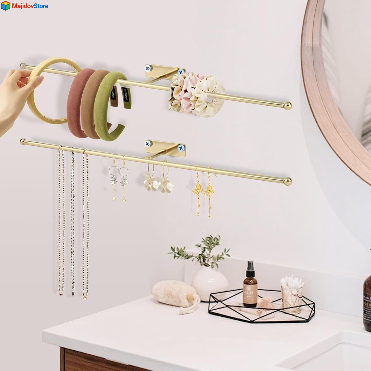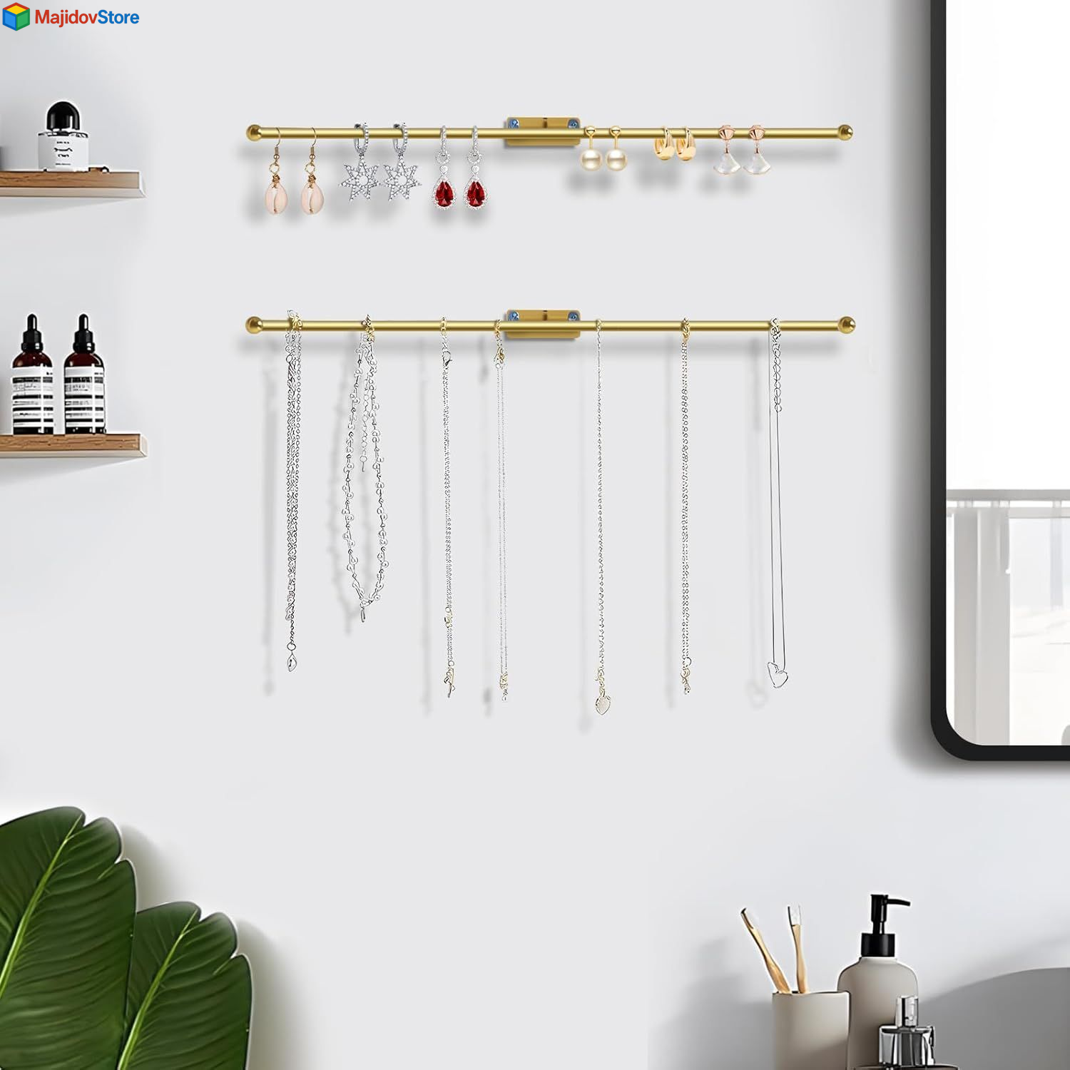 2 Pack Wall Jewelry Organizer, 14.5'' Necklace Holder for Hanging 2Pack-Gold Description Features: Tangle-Free Jewelry Organizer: Keep necklaces, bracelets, and earrings neatly separated and tangle-free. All items stay visible and within easy reach Quick 2-Minute Easy Installation: Mount securely to any wall or door with the included screws. Easy installation means you're organized faster Versatile Multi-Use Organizer: Perfectly stores jewelry, hair ties, scarves, belts, ties, eyeglasses, sunglasses, or hats. Ideal for bedrooms, bathrooms, closets, or entryways Rust-Resistant Stainless Material: Made of high-quality metal with protective anti-rust coating. Stays durable even with daily use in humid spaces like bathrooms Durable & Responsive Support: We stand behind our organizer’s durability. Contact us for prompt assistance with any questions or needs Product Details: Color: 2Pack-Gold Brand: DTMNEP Material: Metal Style: Modern Special Feature: Waterproof, Multifunction Recommended Uses For Product: Bangle, Bracelet, Earring, Necklace, Ring, Watch Product Dimensions: 1.7"D x 0.6"W x 12.6"H Shape: Bar Finish Type: Polished Item Weight: 0.19 Kilograms Number of Compartments: 1 Jewelry Storage Type: Jewelry Stand Manufacturer: DTMNEP Item Weight: 6.7 ounces Item model number: MT-0001 Finish: Polished Mounting Type: Wall Mount Special Features: Waterproof, Multifunction Included Components: Accessories Batteries Included?: No Batteries Required?: No Color: 2Pack-Gold Brand: DTMNEP Material: Metal Style: Modern Special Feature: Waterproof, Multifunction Recommended Uses For Product: Bangle, Bracelet, Earring, Necklace, Ring, Watch Product Dimensions: 1.7"D x 0.6"W x 12.6"H Shape: Bar Finish Type: Polished Item Weight: 0.19 Kilograms Handling We will ship all orders within 2 business day of payment. Delivery We Do Not Ship Outside of the Continental US. Return Policy All items qualify for returns within 30 days of receipt. Buyer is responsible for return shipping on any item that is not damaged. Feedback We take our reputation seriously, we buy and sell online, so we understand the value of trust. If you are unsatisfied with your order, please contact us and we will work with you to resolve it to your satisfaction.