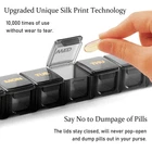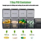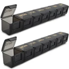 【Safe and Healthy】The daily Pill sorter is made of food grade BPA-Free materials, which is non-toxic and non-harmful, Sturdy and durable. 【Twice A Day Pill Organizer】The weekly pill holder consists of 7 compartments with Black/White 2 different colors and week day lables, make managing your weekly morning night prescription medicine simple. 【Say No to Dumpage of Pills】The snap-shut lids always stay closed tightly, would never pop up even when dropped. But it’s easy to open, which is friendly to people with elderly, kids or arthritis. 【Small in Size, Large in Capacity】Each internal compartment can storage 10 fish oils or 12 large vitamins, Enough space for filling and sorting all your pills for the entire week, Each Compartment Size:1.2"x 1.2"x 1.1" 【What You Get】2 x Travel Medicine boxes, Small and portable size, Whether working or traveling, it can be effectively to help keep tracking and reminding you to maintain day and night medication regimen.