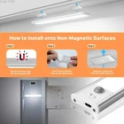 Feature : Bright But Not Glaring: 104 LEDs design, 200lumen 3 Color Tempus: warm light (4500K), natural light (3500K), and white light (6500K) 3 Mode switches: On-Off-AUTO. Brightness Adjustable: Support 10% to 100% dimming 2500mAh Rechargeable Battery magnetic back design 2 working modes: Motion Sensor Mode, Always ON and OFF mode. Sensor Mode: s wireless counter light will automatically turn on when human motion is detected within 120°and 10ft, and auto-off after about 20 seconds of no motion detected. Alaways on Mode: When you select Manual Mode (M), the light will remain on until you turn it off manually. It can light up in any light condition, no matter it is dark or it is in daytime.Can use it as day light or normal light Flicker-free, natural lighting. These LED beads are hidden inside of the flank and glow vertically to a built-in LIGHT GUIDE PANEL, rather than being exposed directly to the air, to avoid the light direct exposure to the eyes. Built-in 2500 mAh high-capacity rechargeable battery, easily to charged via USB. these closet lights last for up to 6 hours under on mode and last 1-2 months under motion sensor mode after fully charged. Color Temps Adjustable and Brightness Adjustable,designed with three color temperatures, warm light (4500K), natural light (3500K), and white light (6500K) This led motion sensor cabinet light has built-in magnetic that can easily stick on any iron surface. It also comes with adhesive tapes and magnetic sheets ensuring it can stick on any non-iron surface. . Deal for kitchen, bedroom, closet, cabinet, workshop, garage, stairwell, hallway, pantry, safe, vanity mirror, basement, emergency supplies, storage room or anywhere you need package: 2 x led motion sensor lighting 4 x Adhesive Magnets 1 x charging cable