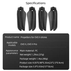 Product Description If you have any questions, please contact customer service first, do not open disputes easily, thank you! Feature: 1.high toughness materials for high aerodynamic efficiency, 2.low power consumption and high endurance, 3.Classic quick release design, press and rotate, quick installation in one second. Specification: Material: PC Applicable models:For EVO II/EVO II Pro Color: Black Net weight:1.29oz.(37g) Package weight:1.4oz.(40g) Product size:9.05*0.98*0.35in(23*2.5*0.9cm) Package size:5.9*3.93in(15*10cm) Package Includes: 2 pairs*Propeller Note: 1.Does not include the Drone(Note: Only for EVO II/EVO II Prodrones, not EVO LITE drones,), 2.Transition: 1cm=10mm=0.39inch, 3.Since the size and weight are manually measured, due to different measurement methods, there may be certain errors in the weight and size of the product, but the error does not affect the normal use of the product, please confirm that you know and accept the error before purchasing; 4.Due to the difference between different monitors, the picture may not reflect the actual color of the item,please make sure you do not mind before ordering, Thank you! About Us We accept all payments authorized by eBay. powered by