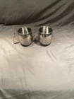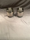 Enjoy your Moscow Mule in style with these two Patron Tequila stainless steel mug cups. These solid silver tone cups feature an embossed bee logo and are perfect for cold beverages. Made from high-quality stainless steel, these cups are durable and will withstand everyday use. They stand at 4 inches tall and are great for any occasion. Whether you're entertaining guests or enjoying a drink at home, these cups are the perfect addition to any barware collection. Please note that this set includes two cups and is an original, licensed product. Shop with confidence knowing you're getting an authentic Patron Tequila item.