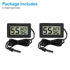 Product Feature π Healthier Homelife: Digital probe thermometer ensures proper indoor humidity control and has important skin, allergen, and other health benefits. π Wide Application: Durable and portable, this temperature and humidity gauge can be used as a refrigerator thermometer, freezer thermometer, reptile thermometer, soil thermometer, humidor hygrometer, cigar hygrometer, and more! π Large Display: Indoor room thermometer features a 1.6inch LCD screen, this thermometer displays temperature in Fahrenheit (β). π High Reliability & Accuracy: Temperature Range -58β to 158β; Temperature measurement accuracy: Β±2β; Measures humidity from 10% to 99% RH. π Long Battery Life: Hydrometer with probe is powered by Two LR44 Button Cell (Included), Battery Working Time up to 8 Months. No more hesitation! Try it now! π Note: Thermometer can not directly be placed on heat source or humidification source. Product Specification Type Hygrometer Thermometer Color Black Material ABS Qunatity 2 Pieces Screen LCD Display LCD Dimension 1.41*0.67 inch(36*17mm) Temperature range -58 β -158 β (-50β-70β) Temperature Accuracy Β±2 β οΌΒ±1βοΌ Measuring Humidity Range 10% RH ~ 99% RH Humidity Accuracy Β±5% RH Humidity Sampling Period 10 seconds Power Source Battery Powered Package Included π 2 x Digital Hygrometers Location Descriptions To improve your buying experience and ensure fast delivery, Your order will be shipped from the warehouse located in either new jersey or california that is closest to your address. If you have any questions, Please contact us. Thank you for your support !