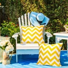 About this item Waterproof Material: Made of special polyester material, the outdoor pillow case features 100% waterproof performance and 50+ UV protection, effectively preventing splashing and fading of prints for long time use. The durable fabric is wear-resistant, tear-resistant, soft, and skin-friendly, offering a comfortable touch. Unique Stripes: The spring cushion cover comes with modern stripes in a special wavy design, showing a unique and highly personalized look. Striped prints on both sides make it dainty from every angle. Place it on the garden's sofa, adding elegant and sophisticated decoration to your outdoor relaxing place. Invisible Zipper: The farmhouse pillowcase is equipped with an invisible zipper, which does not affect its aesthetic level at all and retains the cozy touch. The zipper is durable and smooth, easy to insert and replace. (Note: Insert NOT Included) Wide Application: The striped couch pillow cover is simple and versatile, suitable to decorate outdoor gardens, courtyards, patios, lawns, tents, chairs, benches, deck chairs, balconies, parties, picnics, weddings and other places. It is also perfect for indoor occasions, like living rooms, bedrooms, cafes, offices, restaurants, beds, sofas, etc. Washing Tips: You can use a towel or brush to remove the dirt on the surface, then wipe to dry for a quick clean. The waterproof throw pillow covers can be machine-washed or hand-washed in cold water. When machine washing, please zip it up, use soft washing procedure and hang it to dry it. (Note: Please try to avoid ironing.) Product Description