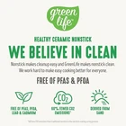 Material PFAS-Free Healthy Ceramic Nonstick Special Feature Induction Stovetop Compatible Color Speckled Cream Capacity 1 Liters About this item CERAMIC NONSTICK: The incredible ceramic nonstick coating delivers easy releases, seamless transfers, and effortless cleaning. SET INLCUDES: 9.5” Frying Pan, 11” Frying Pan TOXIN-FREE: Our healthy ceramic nonstick coating is derived from sand and free of PFAS, PFOA, lead, and cadmium for worry-free cooking. INDUCTION READY: The innovative induction base delivers uniform heat distribution on all cooktops: induction, gas, electric, halogen or ceramic. EASY TO CLEAN: Simple wipe or rinse is all you need - saves water and energy with minimal cleanup WOOD-TONE HANDLES: Comfortable handles provide a safe and secure grip while adding a vintage, rustic charm to every dish. BETTER FOR EVERYONE: Ceramic nonstick creates 60% fewer CO2 emissions during its curing phase than the curing phase for traditional nonstick. DIE-CAST BODIES: The solid construction offers extreme strength with quick and even heating every single time. SPLATTER CONTROL: Extra-tall sides keep oil and sauce contained, meaning less cleanup after cooking