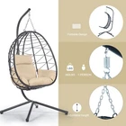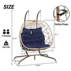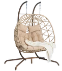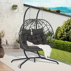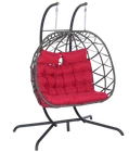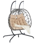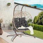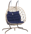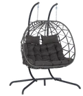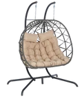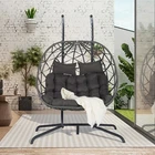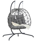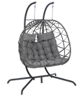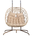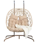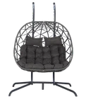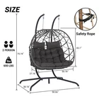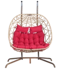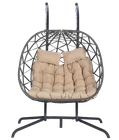 Description: This egg swing chair that fits 2 people comfortably was built to last in the outdoors with its strong durable iron frame it will be perfect for all weathers. Sit in luxurious comfort while surrounded by the peace and beauty of your backyard, or enjoy a good book indoors with this comfortable hanging chair. The seat cushions are made of premium polyester fabric and filled with cotton, it is soft and comfortable. The chair is crafted from wicker rattan, it is UV-Resistant, rust resistance and weather-resistant. Metal stand ensure the stability and safety for you and your family. Features: 1.High-quality durable iron frame, UV-Resistant, & rust resistance great for outdoor use 2.Hand-woven and handcrafted Wicker material by outstanding craftsmen 3.Cushion made from outdoor fabric and filled with soft Cotton, breathable design 4.Supported by a stand constructed from strong and durable iron 5.Fits 2 people and enough space for any position that you like 6.Iron Spreader Bar Included 7.Simple Assembly Required Specifications: Product Type: Egg Chair Style: Modern Seating Capacity: 2 Chair Frame Color: Dark Gray, Light Yellow Cushion Color: Dark Gray, Blue, Light Gray, Red, Khahi Frame Material: Iron Chair Material: Rattan With Stand: Yes Cushions Included:Yes Cushion Material: Polyester Fabric Seat Fill Material: Cotton Assembly Required: Yes Additional Tools Required: All Tools Included Est. Assembly Time: 30 Mins Weight Capacity: 600 lbs Dimension: 58.66"L x 38.18"W x 75.19"H Weight: 78 lb Number of Packages: 1 Package Included: 1x Egg Chair 2x Cushions 1x Stand 1x Hardware Bag 1x Instruction