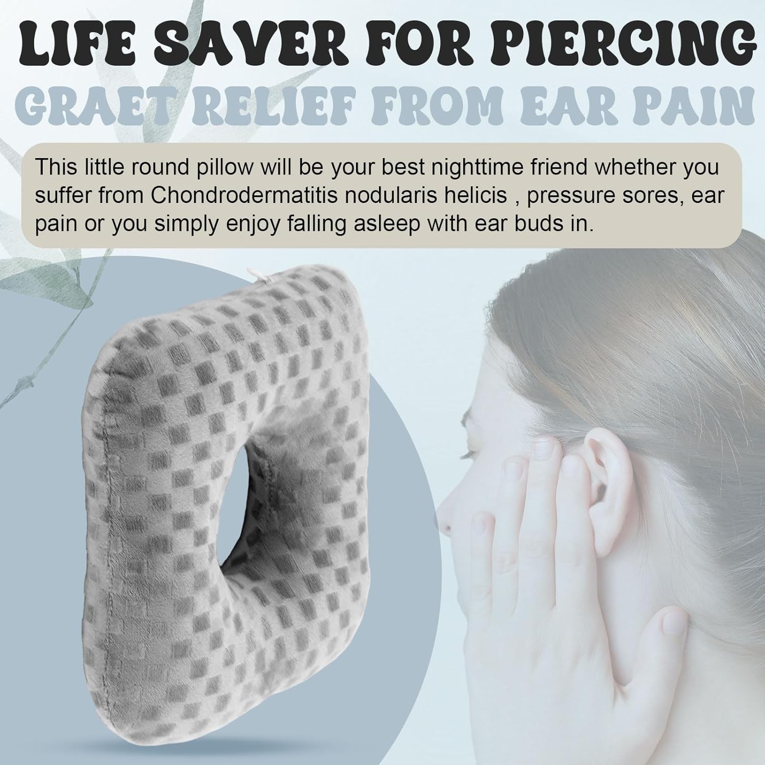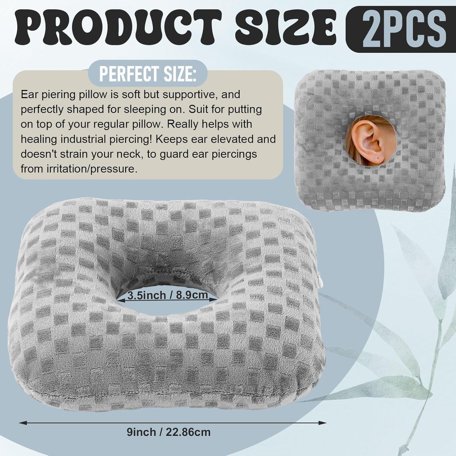 2 Pieces Ear Piercing Pillows for Side Sleepers with Hole O Shaped Donut Shaped Pillow Circle Guard Protectors for Ear Pain Inflammation Pressure Sores Relief Side Sleeping(Gray) Item Description What You Get: you will receive 2 pieces ear piercing pillows for side sleepers, which are designed for new ear piercings or those with sensitive ears, to support comfortable sleep and relieve pressure on ear holes, allowing for effective healing Healing Pierced Ear Pillow: the ear piercing pillow with hole features O shape and central opening, which provides a comfortable resting space, reducing pain from friction and helping relieve ear pressure when sleeping on the side, ear inflammation and pressure sores Soft and Comfortable: our earring pillows for sleeping adopt cotton case and reliable polyester filling, which are soft and comfortable, and not easy to deform under pressure; And they are shaped to accommodate the ear, that provides ample support for the head or neck Proper Size: each of the ear pillow with hole for ear pain measures about 9 inches in total width, and the middle hole is about 3.5 inches in diameter, that will not take up much space on your bed or in your travel bag; And the side zipper allows for effortless removal of excess filling to adjust to your liking The Nighttime Companion for Piercing Enthusiasts: these ear guard pillow are not just ideal for pierced ear enthusiasts and side sleepers, but also for recovering from ear surgery, wearers of earrings or earplugs, aids or even ear pain sufferers › See more product details Features: Our circle ear piercing pillow features a circle hole in the middle, into which the ears can be embedded when sleeping on the side to avoid direct pressure. And area around the holes kept firm, to ensure even support for the head while preventing the ears from touching the pillow surface. The small O shaped pillow design, convenient for carrying, which are suitable for home or travel application. Specifications: Material: cotton, polyester Color: gray Size: about 9 inches in total width Package includes: 2 x Ear piercing pillows with holes Notes: Manual measurement, please allow slight errors on size. The color may exist a slight difference due to different screen displays. Payment We accept payment only through PAYPAL Shipping We ship products worldwide through standard express courier service, it will reach within 7 to 10 days to abroad buyers, we ship the product after recieved clear payment and give full information about shipment to the buyer Return We accept product return within 7 to 21 days from delivery date but product should be in original position and not in damaged condition,the return shipping charges will be buyer responsibility