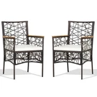 Specifications: Color of PE rattan: Mix Brown Color of cushion: Off White Material: PE rattan acacia wood steel polyester sponge Overall dimension of each chair: 24" x 23" x 35" (L x W x H) Dimension of each Cushion: 19.5" x 18.5" x 2"(L x W x Thickness) Seat Height from the Ground: 19.5" Net Weight of Each Chair: 11 lbs Weight Capacity of Each Chair: 350 lbs Package Includes: 2 x Chairs 2 x Cushions 1 x Instruction No matter hosting for friend or just relaxing with the one you loved these comfortable outdoor dining chairs will be the perfect selection for you! With hollow backrests acacia wood armrests soft cushions and wide seats these patio bistro chairs are ergonomically designed for your upper body. Meanwhile the all-weather PE rattan and rustproof steel frame make these dining armchairs durable and stable for outdoor use. So you can put them wherever you want such as patio backyard poolside or porch adding a great addition to your outdoors. If you are looking for outdoor dining chairs like this do not hesitate to place an order! Designed for outdoor durability with all-weather PE rattan and anti-rust steel frame Come with strong loading capacity up to 350 lbs for each dining chair Avoid scratching the floor while adding extra stability with non-slip foot pads Hollow backrest for breathability Acacia wood armrests for cozy arms support Wide seat for comfortable sitting experience Padded cushions for soft touch Removable covers for easy maintenance Please take cushions indoors while it is raining or snowing Match with coffee tables dining tables or fire pit tables (not included) Suitable for patio porch poolside backyard and poolside etc Detailed instruction and necessary accessories included for easy installation