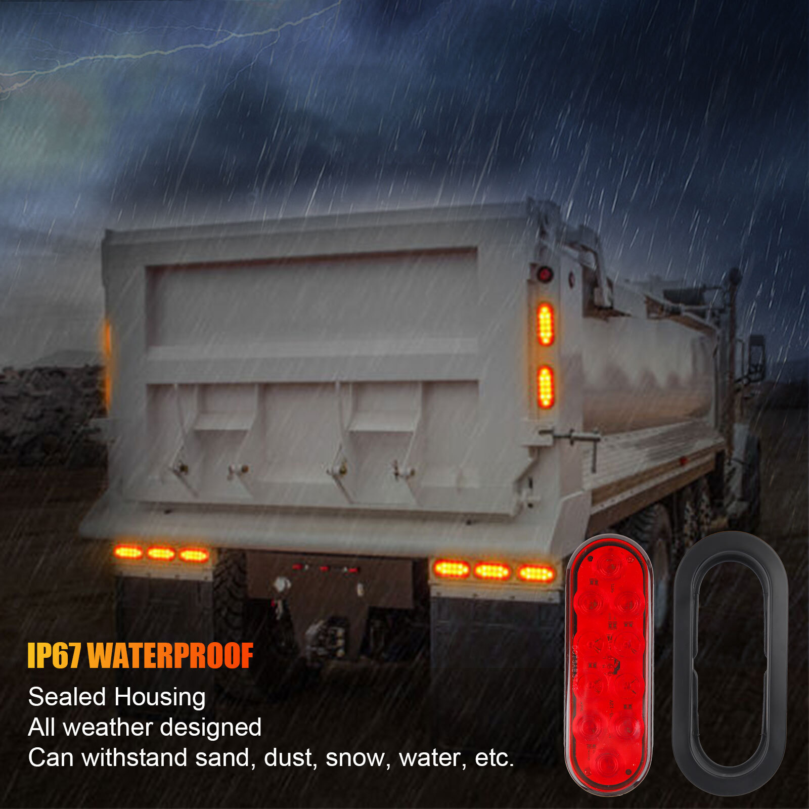 2 Red 6" Oval Trailer Lights 10 LED Stop Turn Tail Truck Sealed Grommet Plug DOT Item Description Features Black rubber grommet for easy surface mount setup. Advanced LEDs draw less current and much brighter than incandescent bulbs. Compatible with most 12V vehicles such as trailers, tractors, trucks, RV, camper, bus, boat, UTV, etc. Lower consumption and power saving, ensures long-term use for your vehicles. Meets all applicable DOT/SAE standards and fit standard trailer light mounting position 10 LED super diodes for each light. grommet fits standard mounting position Specifications Features Black rubber grommet for easy surface mount setup. Advanced LEDs draw less current and much brighter than incandescent bulbs. Compatible with most 12V vehicles such as trailers, tractors, trucks, RV, camper, bus, boat, UTV, etc. Lower consumption and power saving, ensures long-term use for your vehicles. Meets all applicable DOT/SAE standards and fit standard trailer light mounting position 10 LED super diodes for each light. grommet fits standard mounting position Specifications Size: 2-5/16" x 6-7/16" oval, 1" thick (1-3/4" thick at wiring connection). Hole size: 2-1/2" x 6-3/4" LED Type: High quality SMD LED Color: Super bright red Working Voltage: 12V DC Waterproof rate: IP67 Output high and low brightness: high brightness work as turn/brake light, and low brightness work as tail light Applications Compatible with trucks, trailers, tractors, semi-trailer, dump truck, bus, boat, Heavy duty trucks tractors like Peterbilt, freightliner, international, Kenworth, Mack, Western Star,Volvo,Paccar etc. Package Includes: 2 x LED Trailer Lights 2 x Oval Rubber Grommet 2 x 3-pin water tight plug with wires Detail Images Shipment All item will be carefully packaged very well with safe material and shipped to US States. Items will be sent in 2 working days,usually shipped by USPS Priority Mail. It will take about 3-5 days to US addresses. If you would like to ship by other shipment methods,please contact us.( shipping cost will be combined for multiple items you purchase at a time.) Payment Only PayPal is acceptable.It is a safe and easy payment method for buyers. Please pay in 48 hours after you win the item(s).If payment cannot be made in five days,your order(s) will be claimed as unpaid case and the item will be relisted. Return & Refund Customer satisfaction is our first priority. 30-days return is available after delivery. However, return shipping and insurance cost will be on buyers. Please email us before returning. Delivery date will be different according to UPS or USPS tracking system, so please inspect your item immediately upon arrival. Money will be return to you after the return item is sent back. We can not refund to you, if your return item is broken or damaged. Please ensure its safety. Feedback Your feedback is very important to us. If you can't leave us a "5-Star" rating and a positive feedback, please contact us without hesitation before leaving feedback. We are eager to work with our customers. We believe in communication. Give us a call or send us an email, we will make things right for our buyers. Positive feedback for our buyers will be left automatically by eBay Seller Manager Pro.