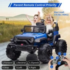 Fun-Filled Features: This ride-on car comes fully assembled with entertainment options including MP3, USB port, FM radio, Bluetooth connectivity, bright LED headlights, and a horn. It also includes a front storage bin for kids to bring their toys along on their adventures.Spacious Design: Measuring 49.6 inches long, 38.6 inches wide, and 34.6 inches high, this ride-on vehicle features a large 20-inch wide seat that can accommodate two children under 4 years old or one child aged 3-8 years. It includes two seats with individual safety belts for added security.Parental and Child Control: The car offers dual control options, allowing parents to operate the vehicle via remote control for added safety while enjoying time with their child. The child can also take the wheel and control the speed Free Shipping Over $49.99* Details 2 Seats Battery Powered Electric Truck with Remote Control Product Description: Fun-Filled FeaturesThis ride-on car comes fully assembled with entertainment options including MP3, USB port, FM radio, Bluetooth connectivity, bright LED headlights, and a horn. It also includes a front storage bin for kids to bring their toys along on their adventures. Spacious DesignMeasuring 49.6 inches long, 38.6 inches wide, and 34.6 inches high, this ride-on vehicle features a large 20-inch wide seat that can accommodate two children under 4 years old or one child aged 3-8 years. It includes two seats with individual safety belts for added security. Parental and Child ControlThe car offers dual control options, allowing parents to operate the vehicle via remote control for added safety while enjoying time with their child. The child can also take the wheel and control the speed using the foot pedal, with independent wheel bearings for smooth steering. Powerful PerformanceEquipped with a 24V 7Ah battery and dual 120W motors, this ride-on truck features 15.5-inch large wheels designed for off-road performance. It can traverse various terrains, providing continuous power and making it an ideal toy for outdoor adventures. Two Packages for DeliveryDue to shipping logistics, the ride-on truck is delivered in two separate packages. The product may take some time to arrive, so patience is appreciated. Assembly is straightforward with the help of the installation video and user manual provided.