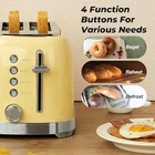 Exquisite Design: Culinaid toaster 2 slice features a stainless steel body with premium finish. The inner tank material is food-grade, non-toxic and harmless, and BPA free, making it very safe for your family when toasting. Practical functions and a metal cool-touch shell make toasting easier and faster while ensuring fast cooling 6 Shade Browning Levels Dial: Culinaid retro 2 slice toaster features a user-friendly 6-shade browning control, allowing you to customize your toasting experience with precision. The higher level setting you select, the darker color you will get for your bread. Whether you prefer a light, golden crunch or a deep, rich toast, this 2 slice retro stainless steel toaster delivers consistent results every time. With Culinaid, enjoy the flexibility to toast your bread just the way you like it 1.5 inch Extra-Wide Slots: Culinaid 2 slice vintage toaster has a 1.5-inch wide slot and a 4.72-inch depth, easily handling bagels, English muffins, and other thicker or smaller breads like sourdough, tortillas, and Texas toast. Its stainless steel design resists rust, and all stains are easily removed with a single wipe. It not only adds a touch of style to your countertop, but also effectively resists fingerprints and smudges 4 Practical Basic Functions: This bread toaster features cancel, bagel, defrost, and cancel functions to meet all your needs. Bagel function toasts only one side of bread. Defrost function thaws frozen bread before toasting it. Reheat function only reheats bread that has been cooled and toasted. Cancel button stops any heating process. Using the simple function buttons, you can perfectly toast bagels, bread, waffles, or English muffins Easy to Clean and Cord Wrap Storage: Culinaid 2 slice toaster features a removable crumb tray at the bottom for convenient crumb collection. After toasting, you can easily pull out the crumb tray and rinse it under running water. In seconds, you have a brand new crumb tray. Non-slip base stabilizes the body of toaster. There's even a power cord storage underneath for conveniently storing excess cord when not in use, keeping your kitchen countertop tidy Multi-color Bread Toasters: Culinaid Retro 2 Slice Toaster comes in a variety of colors, offering a variety of sensory experiences and blending seamlessly with any kitchen decor. It exudes timeless charm and creates a warm atmosphere for breakfasts and gatherings. Its beautiful appearance makes it an ideal gift for Valentine's Day, Christmas, birthdays, Thanksgiving, weddings, and other occasions
