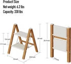 2 Step Lightweight Aluminum Folding Ladder, Portable 2 Step, White&woodgrain Product Details Product Dimensions: 18.1"D x 18.1"W x 17.7"H Brand: mayi plus Material: Aluminum, Iron Color: White&woodgrain Special Feature: Portable, Lightweight, Anti-Slip, Foldable 【Ladder Dimensions】 Open Dimensions: 24 x 18.1 x 20.8 inches.Folded Dimensions: 25.9 x 18.1 x 1.9 inches.Top Step Height: 17.7 inches.This design ensures you can easily reach the desired height when in use. 【Lightweight & No Assembly Required】 Net Weight: 6.2 lbs.Folded Thickness: Only 1.9 inches.This compact design makes it easy to carry and store, fitting into any corner of your home. Fully assembled and can be quickly opened and folded in seconds. The distance between each step is 9.4 inches. 【Anti-Slip Pedals & Rubber Feet】 Each pedal surface features anti-slip stripes to increase friction. Ensure the rubber feet of the ladder make full contact with the ground during use, enhancing stability and durability. 【Aluminum Frame and Pedals】 Our ladder features an aluminum frame and aluminum pedals, making it more stable and secure. It provides excellent load-bearing capacity and long-lasting durability for everyday use. Supports up to 330 lbs. 【Multi-Functional Design】 The ladder is designed for multiple purposes, suitable for placing plants, arranging items, or climbing. Whether in the living room, kitchen, or garden, this ladder perfectly integrates into various scenarios, adding convenience and beauty to your life.