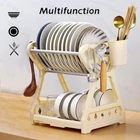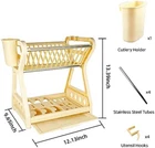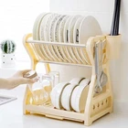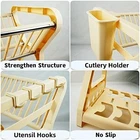 Compact Plastic 2 Tier Sink Dish Drying Rack for Kitchen Counter with Drainboard Tray Set, Stainless Steel Tube Small Dish Drainer Strainers Utensil Holder for Plates Organizer, White DESCRIPTION 【SPACE SAVING】- The size of the dish rack is 12.13" x 9.65" x 13.39", taking up minimal counter space in the kitchen, giving you more freedom to cook 【LARGE CAPACITY】- The top layer of the sink drying rack can hold 13 plates, the bottom layer can hold 6 bowls and several coffee cups, and the side can hold cutlery and cooking utensils 【STURDY】- Dish racks for kitchen counter is constructed with durable plastic and metal rods to resist bending and rusting 【EASY INSTALLATION】- No extra tools needed. You can put together the included sink drying rack, drain board, utensil hooks, cutlery holder, and stainless steel tubes in just 2 min 【EASY TO CLEAN】- Just use a damp cloth or rinse them with water