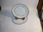 You are bidding on a set of two vintage Platinum Scroll dinner plates by Taihei Fine China, model number 6984. The plates are 7.5 inches in diameter and made of porcelain. They feature a gray, white, and platinum scroll pattern. The backstamp is printed with the English Fine Bone China designation made in Japan. Would make a nice addition to a collector or collection. There is no chip, cracks or breaks and all is very good condition. Any questions, feel free to message me. Happy Bidding! PLEASE NOTE: I PACK WELL BUT OCCASIONALLY AN ITEM ARRIVES DAMAGED DUE TO NEGLIGENT CARRIER HANDLING. IT IS BUYER'S RESPONSIBILITY TO FILE A CLAIM WITH THE CARRIER FOR REIMBURSEMENT. BOTH USPS AND UPS REQUIRE THAT A BROKEN ITEM, THE SHIPPING BOX AND THE PACKAGING BE TAKEN TO THEIR LOCATION FOR EXAMINATION.
