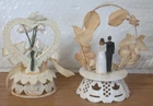 2 Vintage Wedding Cake Toppers Bride Groom and Love Birds 40s or 50s Please see all photos for condition. From a smoke and pet free home. I do combine shipping.