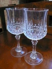 Up for sale is a set of 2 Crystal Water Goblet Longchamp (Clear) by CRISTAL D'ARQUES-DURAND. They are in excellent condition. These are pictures of the actual item you're bidding on. Check out my other auctions! I only accept PayPal for payment. Thanks for looking.