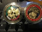 2 challenge coins--1 put on the whole armor of god 1 u.s.m.c globe and anchor will not ship out of lower 48