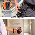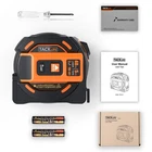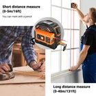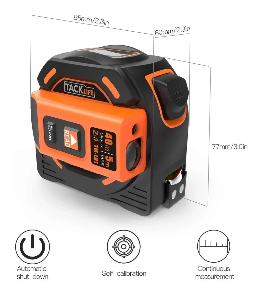 Dual Measuring Capability: Laser: 40 m range, high continuous measuring accuracy (≤10 cm ± 2 mm; 10 m ± 3 mm), dual detection holes for stability, quick reading via an LCD display. Tape Measure: 5 m (19 mm) length, nylon coating for wear resistance, magnetic hook. Unit Conversion: Easy switching between meters (m), inches (in), and feet (ft) with support for decimals and fractions. Convenience: Wrist strap and belt clip for portability. Power Management: Automatic shutdown for energy saving (laser after 20 seconds; device after 150 seconds). Durability: Waterproof design and support for automatic calibration. Package Contents: The device comes with AAA batteries, a screwdriver, a cable, and a manual in multiple languages.