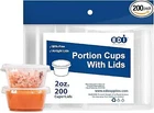 Versatile Use: Perfect for jello shots, portion control, condiments, sauces, dressings, slime, crafts, and more, these 2 oz jello shot cups with lids offer endless possibilities for both home and commercial use. Secure Snap-On Lids: Enjoy peace of mind with airtight leakproof lids of our jello cups that snap on easily and stay tightly shut, ensuring your contents remain fresh and sealed. Convenient Packaging: Each set includes 100 condiment cups and lids, providing you with an ample supply for various occasions. Say goodbye to leaks and spills with these durable, crack-resistant condiment containers with lids. Space-Saving Design: Stackable and packaged in separate bags for easy storage and access, these salad dressing containers are designed to help you optimize your cabinet or pantry space. Eco-Friendly and Safe: Made from food-safe, BPA-free plastic, these jello cups are not only durable and crack-resistant but also eco-friendly and recyclable, contributing to a cleaner environment.