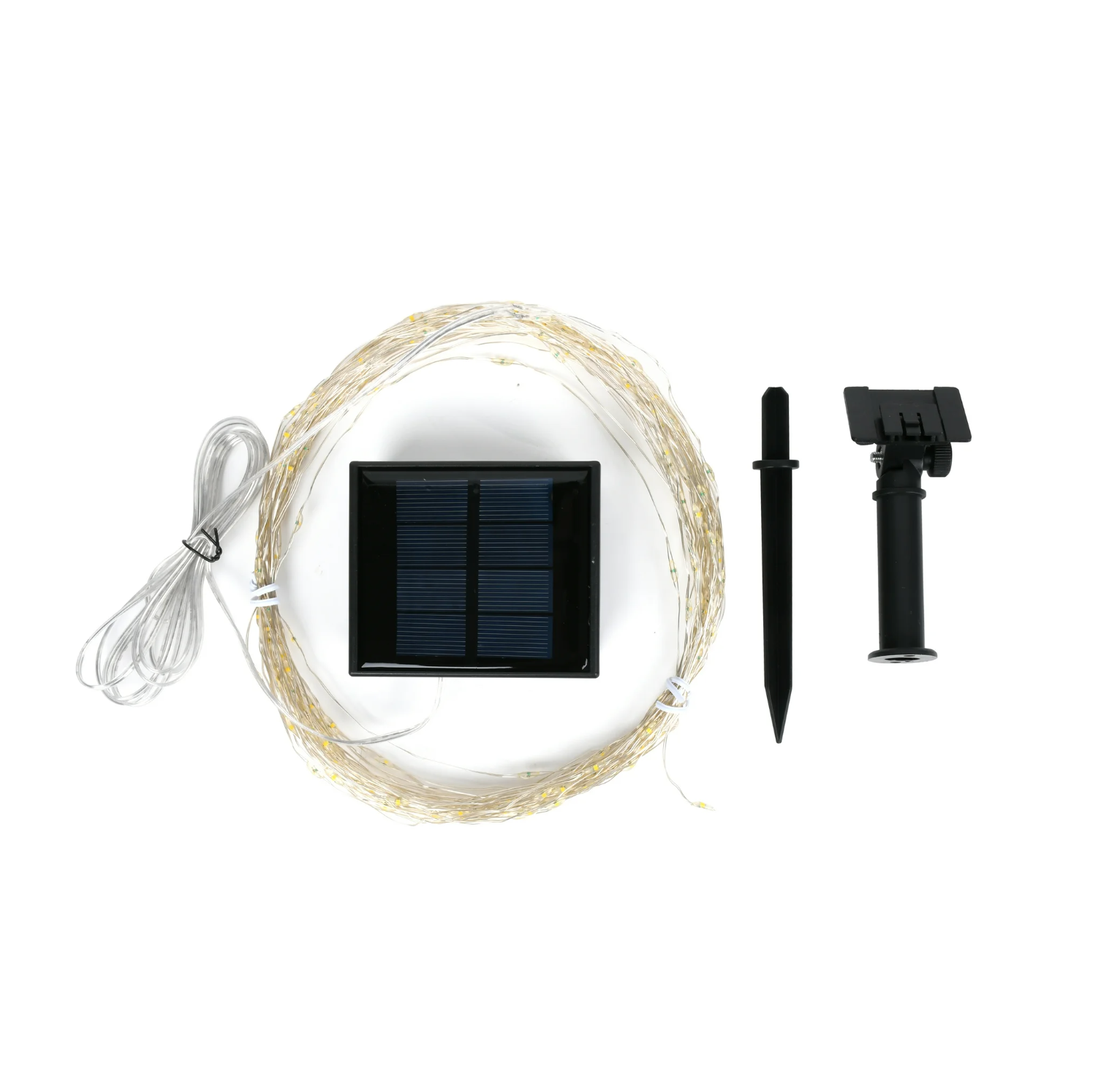 Solar Powered : Utilizes solar energy for power, offering energy efficiency and zero operating costs, with an 800mAh rechargeable Ni-MH battery included. Extensive Lighting : Features a 72ft long string with 200 super bright warm white LED bulbs, providing a 360-degree lighting angle. Flexible Design : Constructed from durable, flexible, and bendable copper wire, allowing for easy shaping and customization. Versatile Modes : Offers 8 different lighting modes, selectable via a mode button, to suit various decorative needs. Automated Operation : Equipped with a built-in sensor for light control, enabling automatic illumination at night and turning off during the day, working up to 8 hours on a full charge. The Mainstays Solar Power 200-Count Warm White Fairy LED Wire String Lights are a great choice for your garden decoration. The extra-long & vibrant solar-powered fairy lights comes with a 72ft long string and 200 super bright led bulbs. These solar lights are made of high quality copper wire and super bright led, they are durable, flexible and bendable. You can easily make it into any shape. Lend a festive touch to various areas, ideal for decorating your house! The outdoor solar fairy lights have an on/off and mod button to function the lights. You can select 8 different modes to satisfy your diverse needs by pressing the mode button. The solar string lights are equipped with 800mAH capacity, rechargeable battery & energy-saving solar panel, powered by solar energy. With a built-in sensor, the fairy string lights will light up automatically at night and turn off during the day, working up to 8 hours after fully charged. If you need to make it light during the day, just turn ON and cover the solar panel preventing sunlight from reaching it. Mainstays Solar Power 200-Count Warm White Fairy LED Wire Lights Solar power, energy efficiency, zero fee; 72ft long string and 200 super bright led; 360° lighting angle & 180° adjustable solar panel; Durable, flexible and bendable copper; 8 different modes to satisfy your diverse needs; 800mAh rechargeable Ni-MH battery included; Built-in sensor with light control; work up to 8 hours after fully charged.