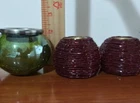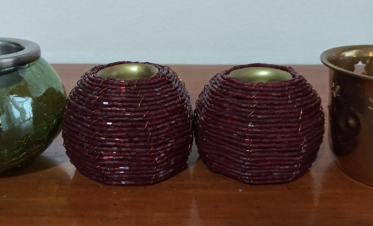 Lot of 3 set of Assorted tealight candle Holders. 2 green crackle glass tealight holder 2 red beaded candlestick holder