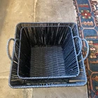 2 x used hand woven paper rope storage baskets in black with handles. Cube square shaped ideal for all types of storage in used good condition. Larger size 35cm square x 25cm deep Medium size 30cm square x 22cm deep No returns