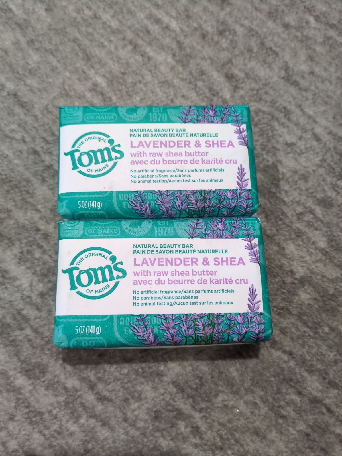 2 x Tom's LAVENDER & SHEA Natural Beauty Bar, No Artificial Fragrance, 5oz EA.