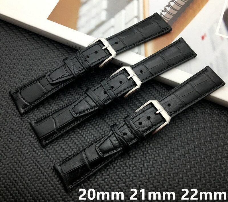 Top quality 20mm 21mm 22mm Black Genuine Leather Watch band Watchband For IWC strap PORTUGIESER CHRONOGRA belt on buckle 1. Material: Real black Leather 2. Size: 20mm 21mm 22mm 3. Length: about 115+75mm 4. Color: Black 5. The buckle has IWC markings; no markings on strap 6. Buckle size is 18mm
