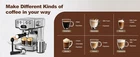 NOTE: Ocaasional water spots or stains found in the recieved product is considered normal, which is due to factory's water flow test, and is not qualified for a return/refund. 【PROFESSIONAL ESPRESSO MACHINE】This electric espresso maker has single shot and double shot, and the extraction will stop automatically when the right coffee strength is reached. And it has a strict temperature control system to make your coffee taste perfect. 【20 BAR PROFESSIONAL PUMP】20 bar high pressure extraction out of the quality coffee liquid filled with golden crema, making the espresso more aromatic and richer.Stainless steel boiler system makes espresso more fragrant and rich in crema. 【POWERFUL MILK STEAMER】Espresso machine with milk frother has steady steam wand turns milk into silky smooth microfoam. Latte machine is convenient for you to create latte, cappuccino, Mocha or plain white coffee art at home or office. Removable frothing nozzle makes cleaning easy. 【QUICK ON START SYSTEM】Espresso Machines 30s quick preheat and automatic stop when the desired amount of espresso is reached. Two independent thermostat controls adjust the temperature of the water and milk foam. 【ACCESSORIES & TIPS】Home espresso machine comes with: portafilter, double shots filter, single shots filter, scoop.Two cups of 60ml/ 2oz, about 14g/ 2 spoons powder for the best concentration.