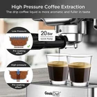 Power Source: Electrical Color: Stainless steel Manufacturer Warranty: 1 Year Coffee Type: Pod Power: 1350 W Features: Adjustable Coffee Spouts, Auto Shut-off, Built-in Water Filter, Dishwasher Safe, Display, Easy to Clean, Frother, Permanent Filter, Portable, Pre-brewing System, Programmable, Self-Cleaning, Steam Wand, Thermostat, Timer, Water Filter, Water Tank Water Tank Capacity: 2 qt Grinding Method: Blade Item Weight: 10.4 lbs Brand: Geek Chef Model: GCF20E Type of Coffee Made: Cappuccino, Espresso, Espresso Macchiato Components Included: Coffee Filters, Coffee Grinder, Measuring Scoop, User Manual, Water Tank Material: Stainless Steel Compatible Water Filtration: Aquaclean, Brita, Saeco Compatible Capsule/Pad System: Cafissimo, Nespresso, Tassimo Bean/Coffee Capacity: 1 oz Control Panel: Analog Voltage: 120 V Country/Region of Manufacture: China Finish: Metallic Bar Pressure: 20 bar Item Width: 9.21 in Item Depth: 11.02 in Item Height: 12.28 in Heat up Time: 25-45 sec MPN: GCF20E Type: Espresso Machine Number of Cups: 0 Cable Length: 32 in Number of Settings/Programs: 30