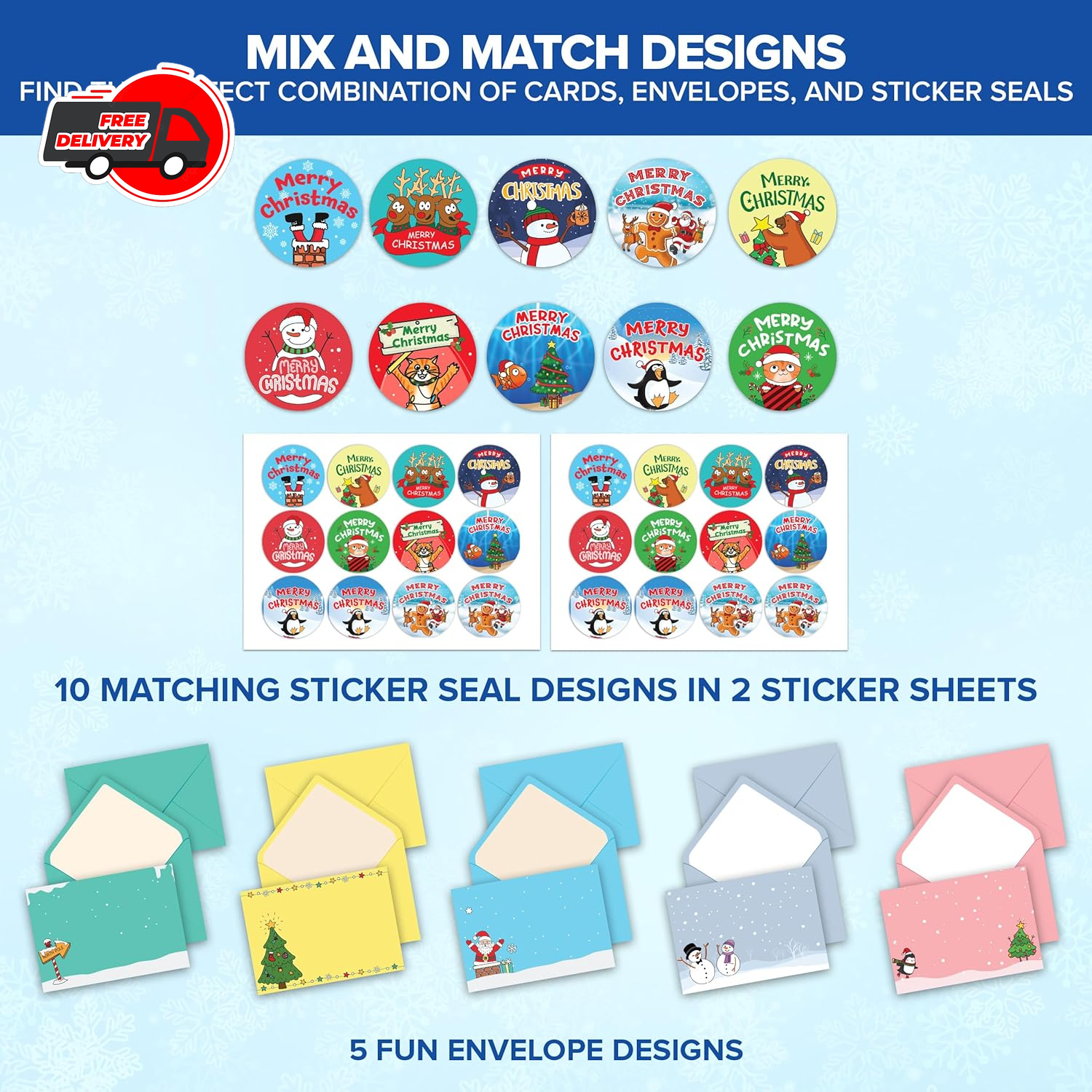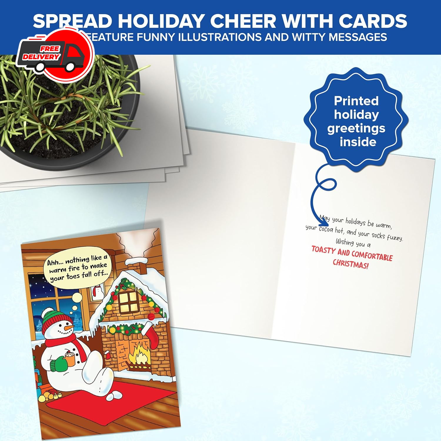 EXPRESS HOLIDAY HUMOR - These 5x7in funny xmas cards funny feature funny Christmas designs that will make your seasonal greetings both humorous & cheery. These fun Christmas cards are ideal for anyone who finds joy in a good joke during the holidays. COMPLETE PACKAGE - Mix & match these Christmas cards with envelopes funny. This set includes 20 funny Christmas cards for kids in 20 designs, 20 envelopes with pre-water soluble gum closure in 5 designs, and 24 sticker seals in 10 matching designs. SPREAD CHEER AND JOY - These funny xmas cards with envelopes include a thoughtful printed message inside. These fun Christmas cards funny boxed feature unique witty remarks that are cleverly crafted, making your greetings and warm wishes memorable. THICK & STURDY CARDS - Each funny Christmas card funny is printed on premium 300gsm thick cardstock and cut with no jagged edges. With its quality, your funny holiday cards with envelopes & assorted Christmas cards funny will travel well in the mail. WE JUST WANNA MAKE YOU SMILE - Your happiness is our unwavering priority. If you ever find yourself less than delighted with your assorted funny Christmas cards funny with envelopes and humorous Christmas cards boxed with envelopes, simply reach out, and it will be made right. Buy with confidence and don't miss out on these well-designed fun Christmas cards with envelopes and Christmas cards funny pack!
