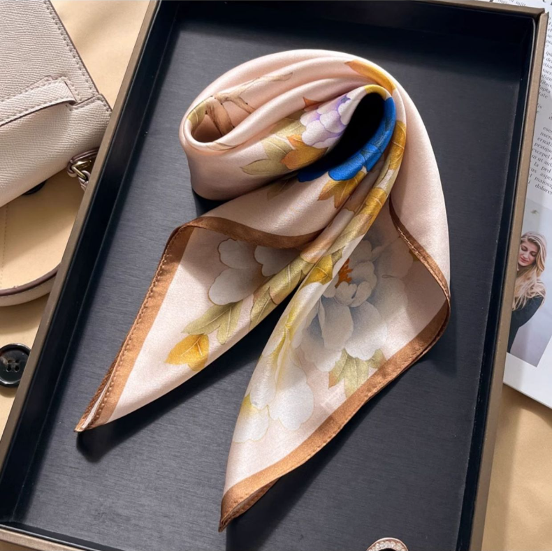 $ 6.78100% Mulberry Silk Scarf Green Floral Square Bandana Wrap 53x53cm for Women