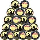 Features: Nice decorations: The challenge coin gift can serve as a nice decoration in your sturdy, office, or living room, which can add some patriotic atmosphere to your home. Besides, the delicate appearance of these coins make them can fit the decoration style of your home well. Warm memoir: The Veterans Day thank you gift is meaningful and significant, represents the honor of veterans, and people's appreciation to them, with quality material, they will last for a long time. Specifications: Material: alloy Color: as the picture shown Size: approx. 1.57 inches/ 4 cm in diameter, approx. 0.08 inches/ 2 mm in thickness Package includes: 20 x Military challenge coins Notes: Manual measurement, please allow slight errors on size. The color may exist a slight difference due to different screen displays. Small items include, please keep away from little to avoid swallowing.