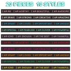 Stay Positive-Inspirational Wristband Set–You will get 20 inspirational rubber wristbands in 10 different styles, 2 of each style, a quantity enough for you to wear daily and share with your friends. Motivational Quotes Designs: I AM ME,I AM WORTHY,I AM BEAUTIFUL, I AM AWESOME,I AM BRAVE,I AM STRONG,I AM CREATIVE,I AM AMAZING,I AM SMART,I AM LOVED,I AM IMPORTANT,I AM UNIQUE and more show off your attitude and make you look cool and attractive! Sending Your Love: the silicone wristbands are inspirational presents for your kids, friends, daughters, nieces, neighbors and classmates on birthday, graduation, first day of school, important festivals and big event celebrations, presenting your sincere blessings of keeping active attitudes HIGH SILICONE MATERIAL: The inspirational rubber bracelet is made of silicone material, soft and comfortable, 2.3 inch in diameter and 0.5 inch wide, suitable for chirldren and teens. Wide range of applications: The inspirational silicone bracelets come in different colors and are colorful and full of cheerfulness, suitable for birthday parties, student sports, family gatherings, school events, classroom prizes, carnivals, music festivals and other occasions.