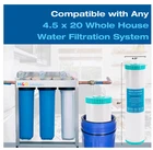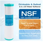 Advanced Dual-Action Softening: This 4.5 x 20-inch water softener utilizes ion exchange technology and silver ion enhancement to effectively reduce hardness minerals like calcium and magnesium, improving water quality. NSF Certified Food-Grade Resin: Made with NSF-certified, food-grade resin, this water softener ensures safe and high-quality drinking water for your household. Silver-Enhanced Ion Technology: Silver ions help maintain water clarity by reducing unwanted particles, enhancing purity, and providing a cleaner water source. Prevents Scale and Protects Appliances: Softened water prevents scale buildup in pipes, water heaters, and appliances, extending their lifespan and improving efficiency. Universal 20-Inch Compatibility: Designed to fit standard 20-inch whole house filtration systems for easy installation and seamless integration. (Compatible models: WGB32B, WCB32C, DB20P-3, AB-WH, WH-300RS). High Flow Rate, No Pressure Drop: With a maximum flow rate of 7 GPM, this system maintains steady water pressure throughout your home. Enhances Appliance Performance: Reducing mineral deposits in dishwashers, washing machines, and water heaters improves efficiency and prolongs their durability.