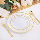 Color Gold Special Feature BPA Free Occasion Christmas, Wedding, Party, New Year, Birthday About this item 100% BPA Free: We promise the materials of plastic plates for party are BPA-free and no-toxic. These gold plastic plates are made of food-grade, reusable plastic. If you want reuse these white and gold plastic plates, just simply wash them with water. These plastic plates are also very ease and comfortable to use. Elegant Design:Our disposable plastic plates use the most classic and elegant design, white plates with gold rim, these plastic party plates will definitely give a deep impression for your guests at the event. Ideal for Any Occasions: This pair of gold disposable plates are suitable for dinner,dessert,salad,cake and appetizer. The elegant plastic plates are sufficient for 100 guests, also perfecting for parties, birthday, weddings, Thanksgiving, Christmas and others any occasions. Great Combination: You will receive a great plastic party plates set, including 100 gold dinner plates and 100 gold salad plates. After a fun,if you don't want waste you precious time, you can choose to discard these fancy wedding plates or reuse them. The decision is yours. Material Plastic Color Gold Special Feature BPA Free Occasion New Year, Party, Christmas, Wedding, Birthday Style Classic Shape Round Seasons All Seasons Product Dimensions 16.1"L x 7.2"W x 10.6"Th Recommended Uses For Product Dinner, Dessert, Salad, Cake, Appetizer Number of Pieces 200 Pattern Striped Product Care Instructions Hand Wash Only Size 200 Pcs Finish Type Glossy Is Microwaveable No Material Feature Disposable Is Dishwasher Safe No Included Components Gold Plastic Plates Theme Novelty Embellishment Gold Rim Product Name Dinner Plate Reusability Disposable Package Type Box Set Pattern Gold Plastic Plates Unit Count 200.0 Count Item Weight 14.26 pounds