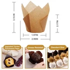 200 Pcs Tulip Cupcake Liners Muffin Baking Liners Greaseproof Cupcake Wrappers Features: STANDARD SIZE: Our parchment paper cupcake liners are not only for baking cupcakes or muffins, also for holding candy, biscuit, dessert, cookie, fruit etc. The height of cups is 2.17" at the low point and to 3.15" at the high point with capacity of 3 Oz making it the perfect choice for baking, and the bottom diameter is 1.97" in the perfect size to fit into a standard muffin or cupcake pan. PROTECTING THE HEALTH OF YOUR FAMILY MEMBERS: By using premium parchment paper cups made from natural 100% wood pulp, you can ensure the health and well-being of yourself and your family while enjoying the convenience and delicious of these Cupcake Wrappers. The muffin liners is grease-proof and non-sticky, high temperature resistant, anti-skid and waterproof, it's oven safe, and can withstand temperature up to 428 degrees fahrenheit. VALUE PACK: You will receive 200 pieces Tulip Cupcake Liners in 3 classic colors (100 x natural liners, 50 x brown liners and 50 x white liners). This variety allows you to choose the liners that best match the theme or occasion of your party or event, whether it's a festive Christmas gathering or any other celebration. ELEGANT & ATTRACTIVE LOOKING: The shape of the tulip cupcake liners decorate your food more professional, classic and wonderful looking comparing with ordinary cupcake liners, which can leave a deeper impression on your friend or guests, make food more delicious & elegant. NO STICKY, NO WORRIES: Using these cupcake liners for baking, muffins and cupcakes will not stick to the pan, which means no scrubbing baking tins to eliminate baked on mess, they also effectively prevent the cupcakes from sticking to the liners, making it more easier to remove without any mess. The parchment paper cups also adds a nice touch to the baking experience. Description: Size/Color: Package includes 200 UNBLEACHED pieces tulip cupcake liners in total.The bottom diameter of these cupcake cups is 1.97inches(5cm) fitting into a standard muffin or cupcake pan. The depth is 2.2inches(5.5cm) at the low point and 3.15 inches(8cm) at the high point with capacity of 3 Oz. MATERIAL - The cupcake liners is Grease-proof and non-sticky, high temperature resistant, anti-skid and waterproof,it's oven safe,and can withstand temperature up to 428 degrees fahrenheit. WIDE APPLICATION - The muffin liners is perfect for putting cake,biscuit,candy, dessert ,cookie ,fruit etc.Suits for for a wedding, christening, anniversary, engagement, birthday, baby shower, Halloween or Christmas event. EASY TO CLEAN & USE - Using these baking cups, muffins and cupcakes will not stick to the pan. This means no scrubbing or scrubbing baking tins to eliminate baked on mess, there will not be too many cakes left on the baking cups. They will make baking easy and enjoyable. It is very simple and quick to use, you can use them to make cupcakes in various parties or festivals. If you need more quantity than shown available - just send me a message and I'll increase the purchased limit for you 🌺 SHIPPING We are always working hard to ensure your package arrives as soon as possible. Please understand that some factors like weather, high postal traffic, and the performance of shipping companies are outside of our control. We offer free shipping to the lower 48 states. We do not accept P.O. Boxes. Please provide a physical address. Thank you 🕊 TRANSLATE with x English Arabic Hebrew Polish Bulgarian Hindi Portuguese Catalan Hmong Daw Romanian Chinese Simplified Hungarian Russian Chinese Traditional Indonesian Slovak Czech Italian Slovenian Danish Japanese Spanish Dutch Klingon Swedish English Korean Thai Estonian Latvian Turkish Finnish Lithuanian Ukrainian French Malay Urdu German Maltese Vietnamese Greek Norwegian Welsh Haitian Creole Persian