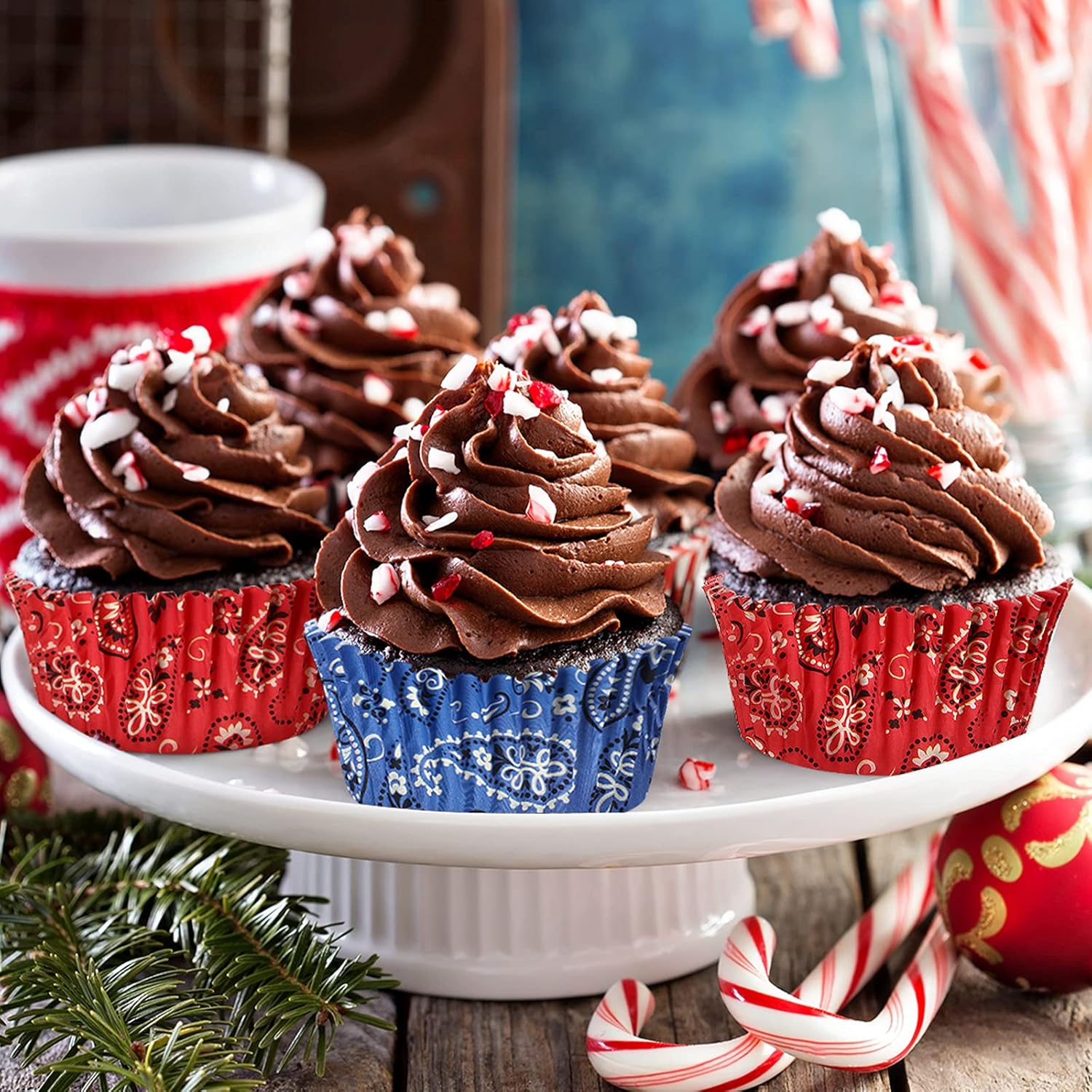 What you will get: you will receive 200 pieces of western cupcake liners in red and blue colors, each color comes with 100 pieces, and the enough quantities can meet your various baking demands or share with other peoples Distinctive features: the western cowboy party baking cups are designed in bandana patterns, which are delicate and exquisite, can highlight your cupcakes and present a bright view on your table, providing you with an ideal adornment Suitable material: our birthday party cupcake topper is made of paper, serviceable and reliable, lightweight and portable, and not easy to deform or break, which can serve you for a long applying time, giving you a pleasant applying experience Size information: the western bandana cupcake liners measure about 11 cm/ 4.3 inch in diameter, which is appropriate for you to use it to decorate; The bright red and blue color can well add a light sensation to your cupcake, which is a nice tool for kitchen baking Available occasions: you can use this birthday cupcake wrapper on various occasions, such as birthday parties, weddings, anniversaries, or other occasions; You can also apply it to hold cakes, cheese, nuts, candies, and so on, which can bring you a lot of convenience Product description