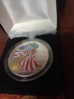 This exquisite 2000 American Eagle Walking Liberty Painted 1oz .999 SILVER Dollar is a must-have for any coin collector. The uncirculated coin features a beautifully painted design of Liberty, the iconic symbol of freedom, and is made of modern silver and clad composition. The commemorative coin is 1oz in weight and has a denomination of $1. This coin is a true gem from the United States, and it is uncertified. It is perfect for anyone who loves to add unique pieces to their collection. Don't miss the chance to own this stunning piece of modern silver and clad composition commemorating the iconic symbol of freedom.