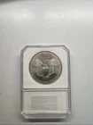 The product is a 2000 American Silver Eagle coin made of 0.999 fine silver, weighing 1 oz. It is an uncirculated coin minted by the U.S. Mint. This particular coin is highly sought after by collectors. High sought after in high grade. This coin sells for thousands