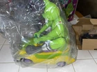 New in box. The items are still in their bags. This does require 6 AA batteries for the car and one 9v for the remote. Batteries are not included. The box has a small blemish on the top. Please see pictures.