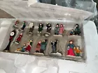 This exquisite 34-piece Victorian Village Set from Grandeur Noel is a must-have for any collector. The set features a variety of buildings and figures, all crafted from high-quality porcelain and painted in vibrant colors. It's perfect for creating a festive Christmas atmosphere in any room, and the set comes complete with a lighted village scene. The set is an original, from the year 2000, and is packaged in a beautiful box for easy storage. It's ideal for adults who appreciate the beauty of Victorian-style Christmas decorations, and would make a great addition to any collection. The set is not handmade, but it's sure to bring joy to anyone who displays it. Missing item #10. Everything else is in the box. Just like new.