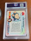 2000 Topps Pokemon TV #143 Snorlax Animation Series 3 ITALIAN VERSION PSA 8 NM-MT Up for sale is a freshly PSA graded 2000 Topps Pokemon TV card. Please review the pictures as the card pictured is of the actual PSA graded card t hat you will receive. The card will be placed in a PSA protective sleeve and shipped in a cardboard box with delivery tracking. Yes - I do offer combined shipping. Additional shipping cost for each PSA graded item is only $0.50. I have 100% positive feedback and have been selling items on ebay for many years. Let me know if you have any questions or need additional pictures and I will be happy to provide them. Pokémon Official Trading Cards , informally known as Pokémon Trading Cards series 1 , was a set of Pokémon-themed trading cards manufactured by Topps in 1999. There were 90 cards in total: 76 Pokémon cards, 13 character cards, and a checklist card. Each of these 90 cards also had two foil card versions (silver and rainbow) in their main United States distributions. This set contained no bonus "chase cards". In the United States There were four different printings. These cards all had an oval Nintendo seal. The printings are distinguished by a blue, black, green, or red Topps logo, with card texts being updated between the first (blue) and second (black) printings. Due to an error, all foil cards after the first printing were printed with black logos, but can still be distinguished by the differences in their debossings. § 1st printing: blue logo on all cards, foil cards had a smooth texture with no debossings. § 2nd printing: black logo on all cards, Pokémon foil cards were debossed with rays and starbursts, while TV cards had a sandpaper finish. § 3rd printing: green logo on non-foil cards only, Pokémon foil cards were debossed with flames and teardrops, while TV cards had dots and rectangles. § 4th printing: red logo on non-foil cards only, Pokémon foil cards were debossed with Poké Balls and targets, while TV cards had dents. A fifth printing featuring foil cards with a smooth finish but a black logo (features of both the 1st and 2nd printings) was also produced to an uncertain extent. Pokémon Trading Cards series 2 was a set of Pokémon-themed trading cards manufactured by Topps in 2000. There were 72 cards in total: 41 Pokémon cards, 5 "Heroes & Villains" cards, 25 episode cards, and a checklist card. Each of these 72 cards also had two foil card versions (silver and rainbow). In addition, there were 27 bonus "chase cards" not included on the checklist, including 12 die-cut embossed cards, 10 animation stick-on cards, and 5 clear cards. Pokémon Trading Cards series 3 was a set of Pokémon-themed trading cards manufactured by Topps in 2000. There were 72 cards in total: 34 Pokémon cards, 12 "Heroes & Villains" cards, 19 episode cards, 6 puzzle cards, and a checklist card. Each of these 72 cards also had two foil card versions (silver and rainbow). In addition, there were 27 bonus "chase cards" not included on the checklist, including 12 die-cut embossed evolution cards, 10 pop-up cards, and 5 clear cards.