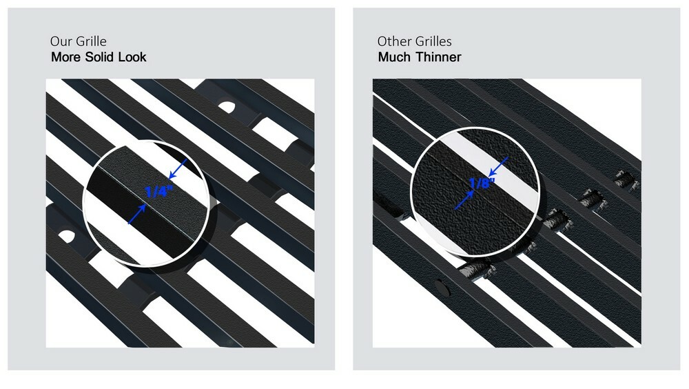Description This item includes Bolt Over/Overlay/Bolton (Drilling Not Required) Black Main Upper Grille Grill Inserts with Powder Coated surface finish, mounting hardwares and installation paper. Fitment * Compatible with Chevy Impala 2000-2005 Features 【INSTALLATION】This is Bolt Over/Overlay/Bolton (Drilling Not Required) 1 pc Horizontal Billet grille insert. OE grille shell remains on the car after installation. 【CUSTOM FIT】Compatible with Chevy Impala 2000-2005 【SPECS】Each grille made from premium Stainless Steel SS and customized to fit the Main Upper of your vehicle. All necessary hardware and instruction are included. Grille insert only, logo or emblem, frame or shell is NOT included. 【PERFECT DESIGN】Each grille made from premium stainless steel with black powder coated surface that offers resistance to oxidization. This grille enhances the visual appearance of your car. 【SATISFACTION GUARANTEED】If the car grille has any quality problem, please feel free to contact us. We will solve your problems with professional and sincere service.